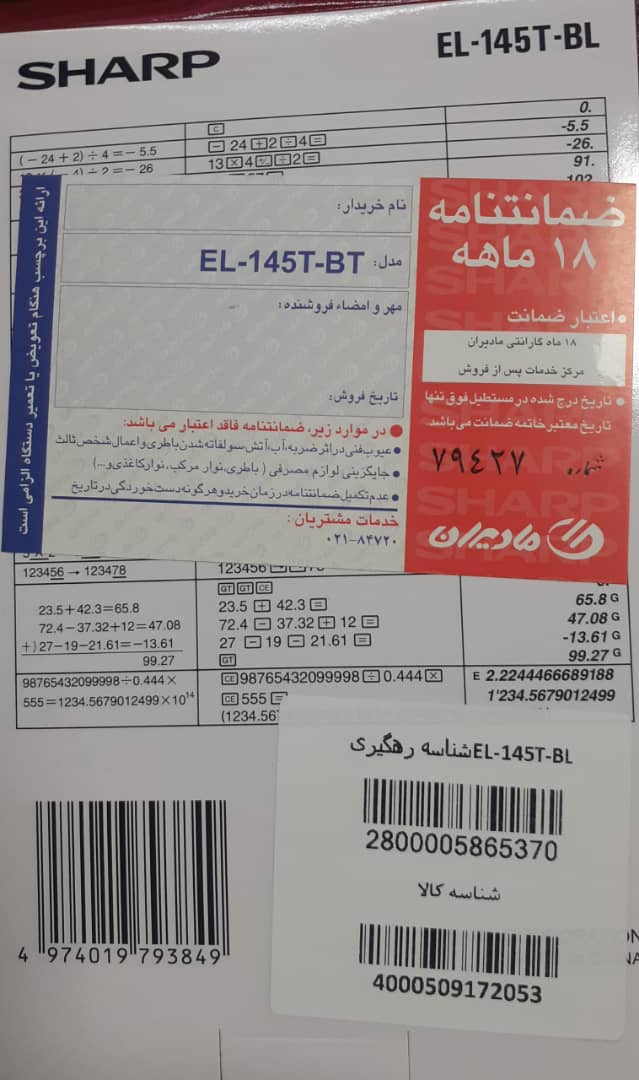 ماشین حساب شارپ مدل EL-145T BL گارانتی مادیران